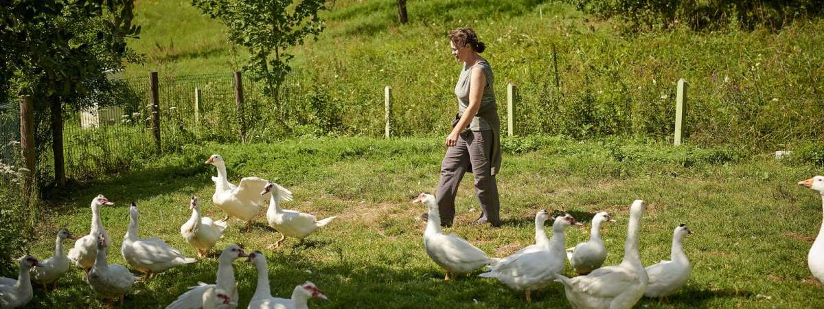 Ferme spécialisée dans l'élevage de poulets, dindes, chapons, canards, oies et pintades.