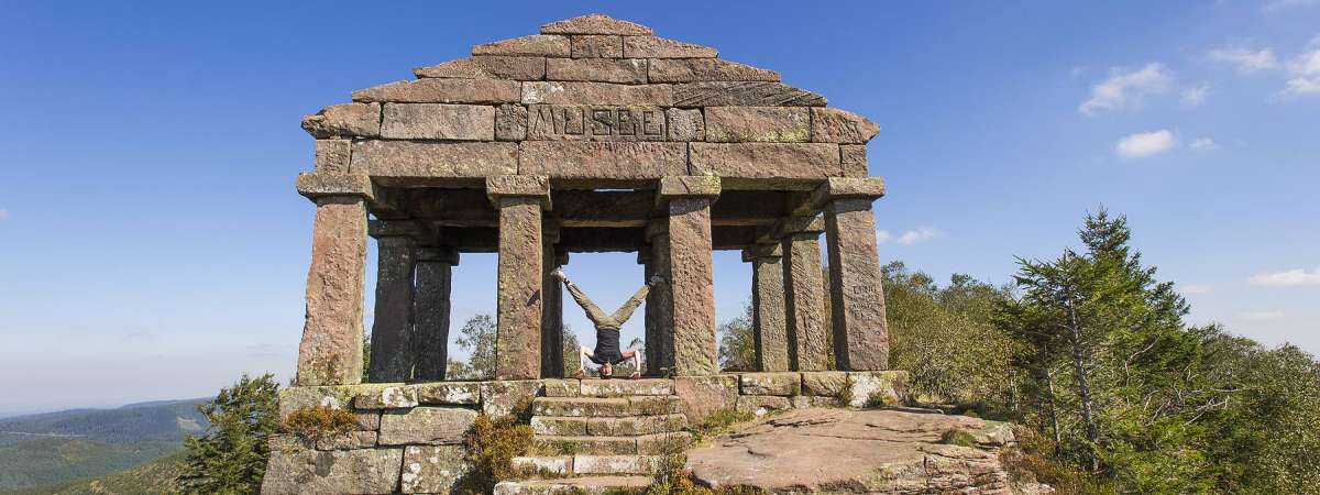 A partir du col du Donon, lancez-vous à l'assaut, de la montagne sacrée du Grand Donon, tantôt point stratégique durant la première Guerre Mondiale, tantôt lieu de culte celtique et romain. Laissez votre curiosité vous convaincre d'un aller-retour à pied de 30 min vers le temple coiffant le sommet de la montagne, avant de reprendre vos vélos pour redescendre vers Schirmeck.