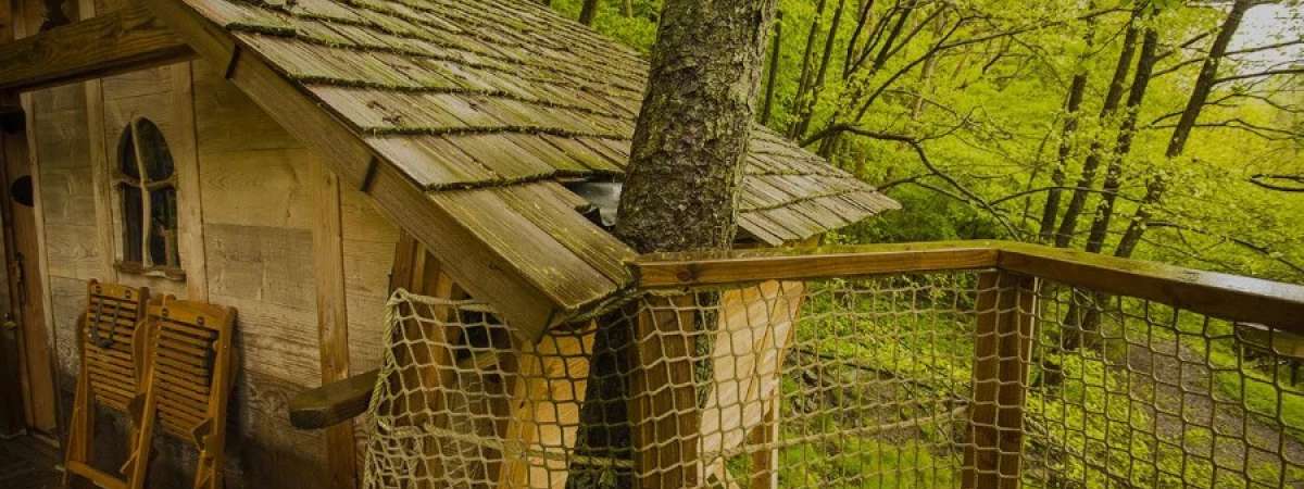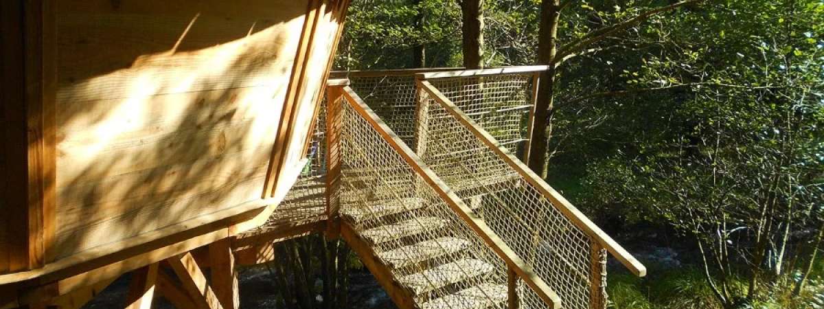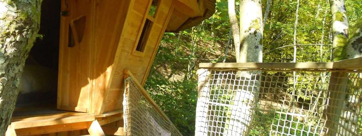 Les cabanes du Goutty, une façon insolite de séjourner dans la Vallée de la Bruche. 5 cabanes perchées dans les arbres ou au bord d'un ruisseau, d’une surface moyenne de 20 m², accessibles par des escaliers droits, et d'une hauteur variant de 3 à 6 m, vous attendent. Les cabanes de 2 à 4 couchages sont équipées de table et de chaises, de toilette écologique, de terrasse et de lanternes à bougies pour l’éclairage. Un chauffage d’appoint est également prévu. Panier petit-déjeuner et linge de maison inclus. Panier du cabaneur, composé de produits du terroir provenant des fermes auberges de la vallée et des producteurs locaux, possible le soir. Espace sanitaire avec douche, toilettes et lavabo dans le bâtiment logistique.