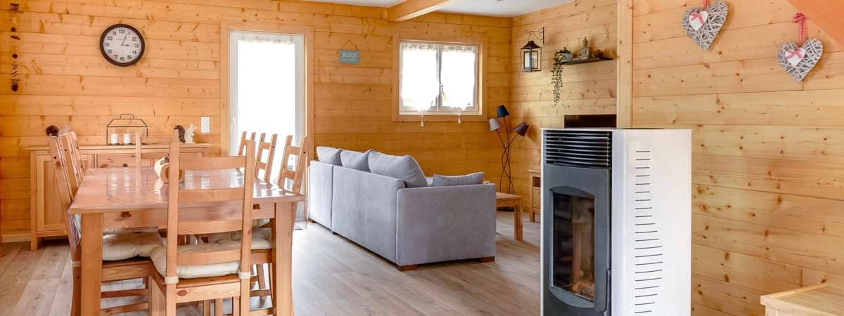 Découvrez son atmosphère intérieur chaleureux et fonctionnel, le tout dans un cadre cosy avec au rez-de-chaussée, une cuisine équipée US, un salon-séjour avec poêle à pellets et canapé convertible, une salle d'eau et un WC séparé.