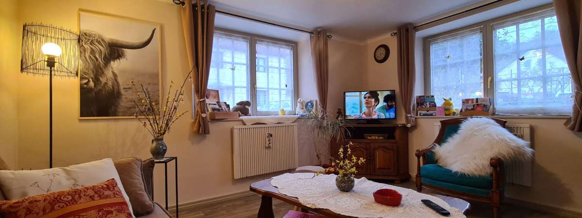 Véra et Pierre vous accueillent dans leur gîte de plein pied et accessible aux personnes à mobilité réduite. Une cuisine toute équipée avec espace repas, une salle d'eau avec douche ouverte et barre de soutien, WC et plan vasque, une chambre avec 2 lits rapprochés, un salon avec canapé convertible pour 2 personnes. Parking privatif à l'avant de la maison.